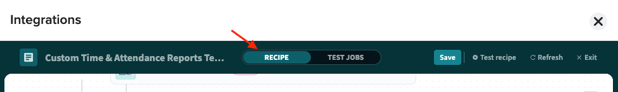 *No need to test the recipe quite yet, we want to finish setting it up. If the test comes up close the pop up and if you need to navigate back, just toggle back to Recipe at the top of the screen.