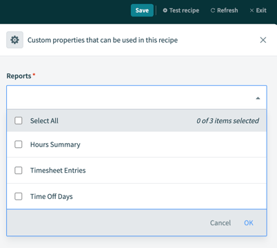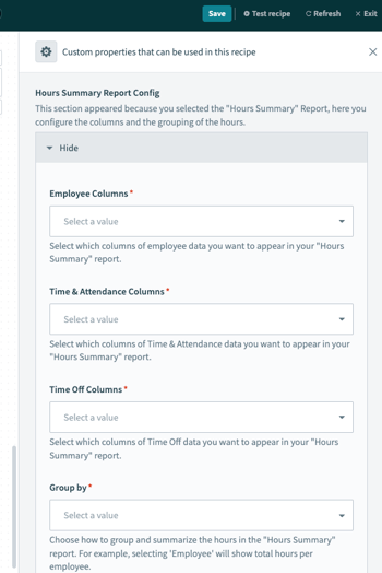 - If you have no available workflows, this recipe can be used on demand by navigating to “Custom Time & Attendance Reports”.